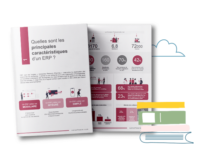 Illustration représentant un tableau de bord de performance et de reporting généré par la solution ERP AMMON de VAL Software.